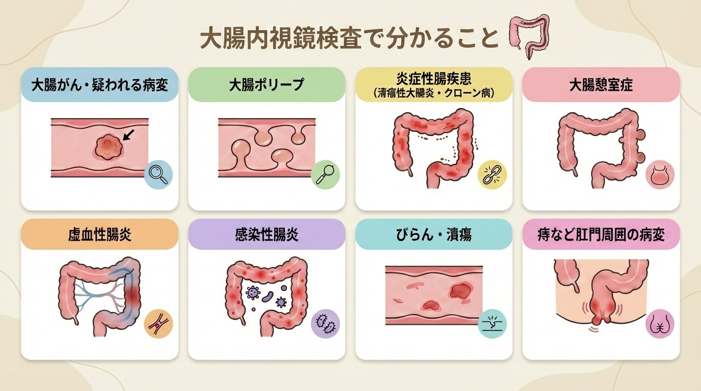 大腸内視鏡検査(大腸カメラ)でわかる主な病気